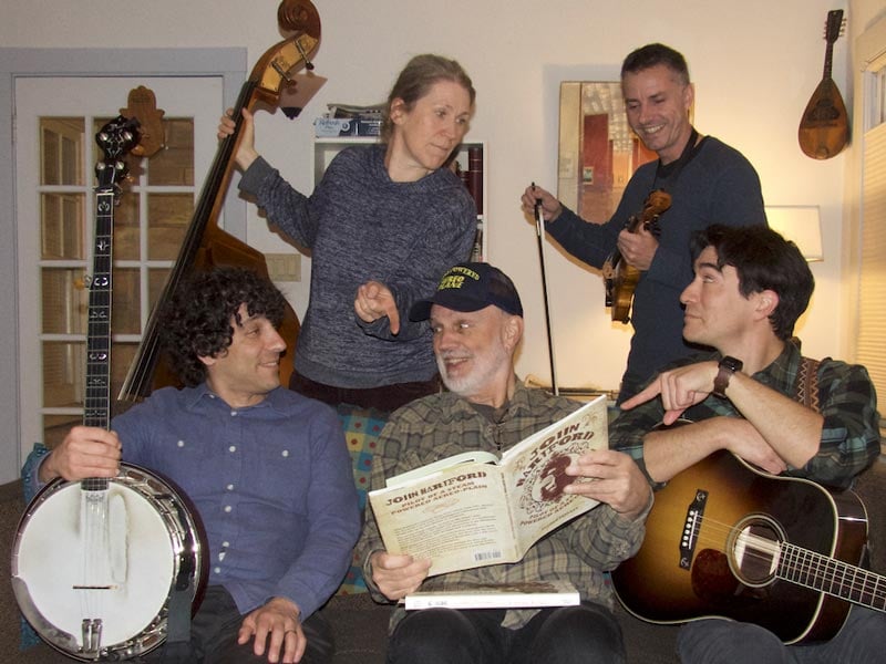 The Far Out Johnnies are a San Francisco-based band honoring the legacy of John Hartford. With deep roots in the Bay Area Bluegrass scene, the band members have diverse musical backgrounds, having played with many popular bands. This variety fuels their exploration of Hartford’s eclectic catalog, from the iconic Aereo-Plain album to fiddle tunes and beyond. Band members include Dave Berry (mandolin and vocals), Mark Ignatius (guitar and vocals), Jordan Klein (banjo and vocals), Dave Watson (fiddle and vocals), and Clare Simmons (bass and vocals).